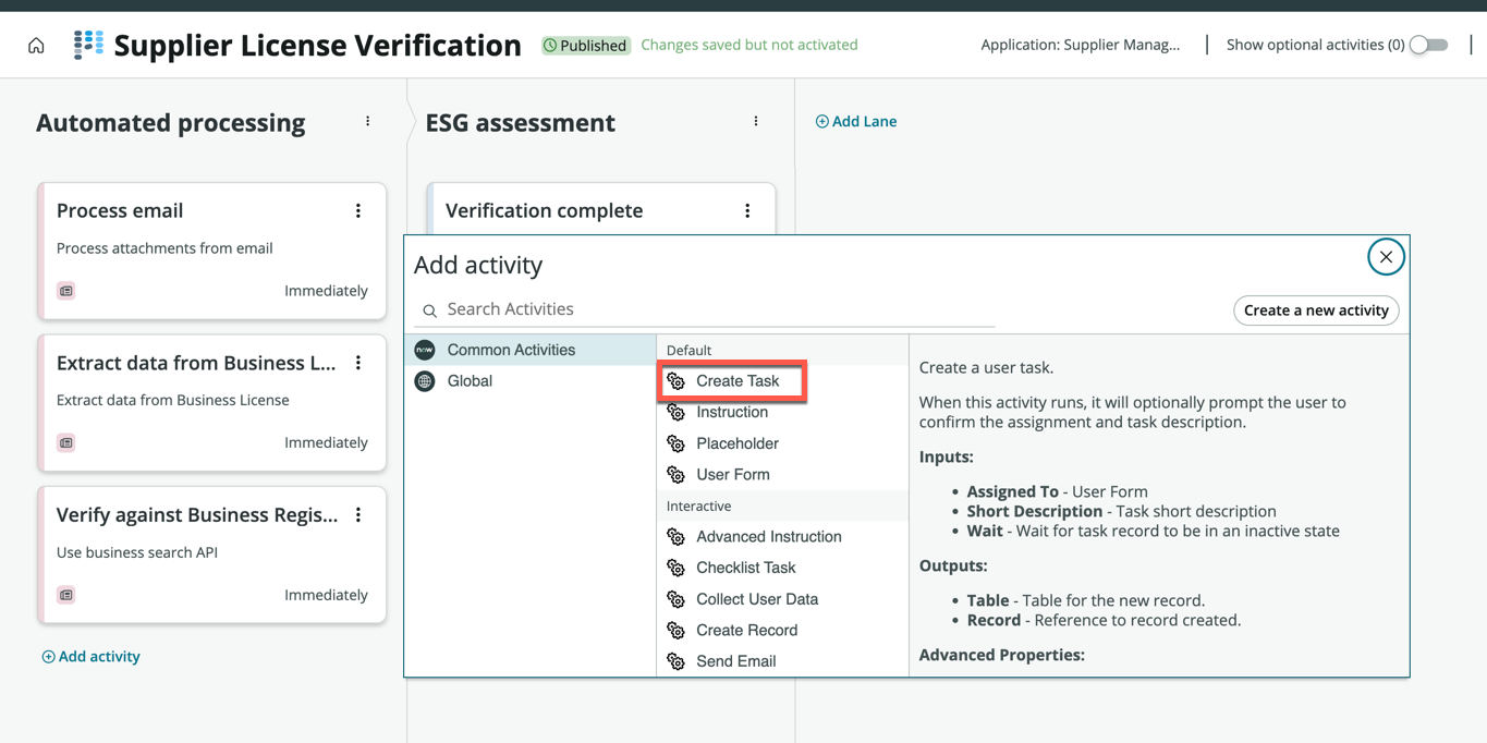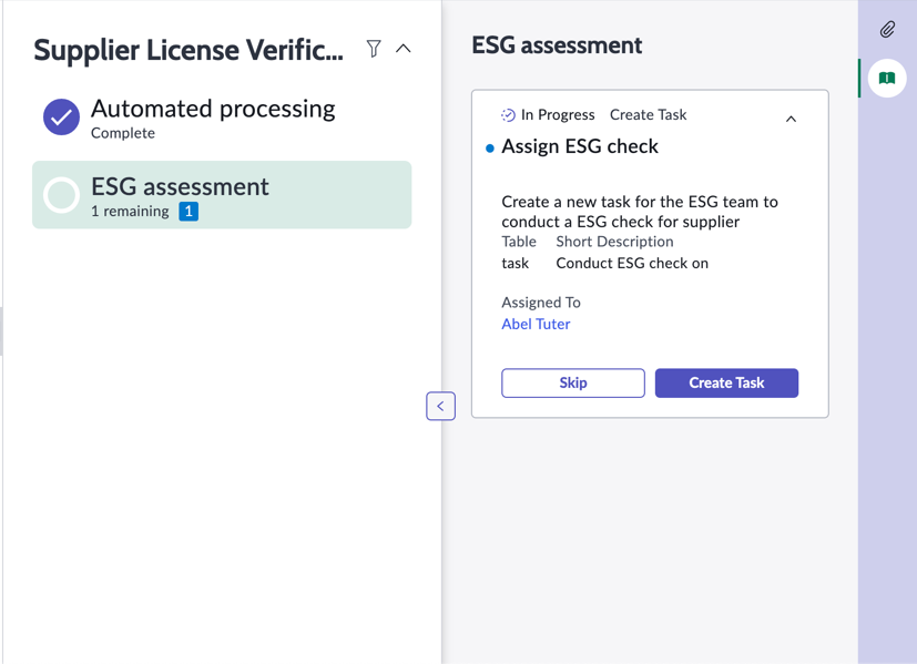 Even with automation, there are still activities that the Supplier Management team has to manually oversee which cannot be avoided. One of these processes is to check the ESG compliance of suppliers. In this exercise, we will be building on top of a playbook to assign a task to the ESG compliance team so that a suppliers commitments are tracked and accounted for.