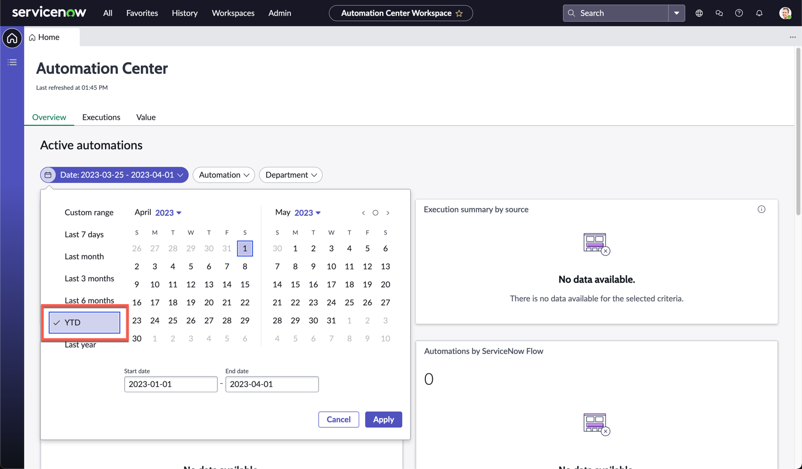 Click on the date range, then select YTD, this will filter the data to update widgets