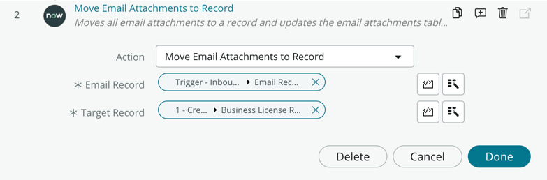 With this workflow active, any time a new email is received with the keyword license, it would automatically transfer any attachments in the email to a new business license record that is created.