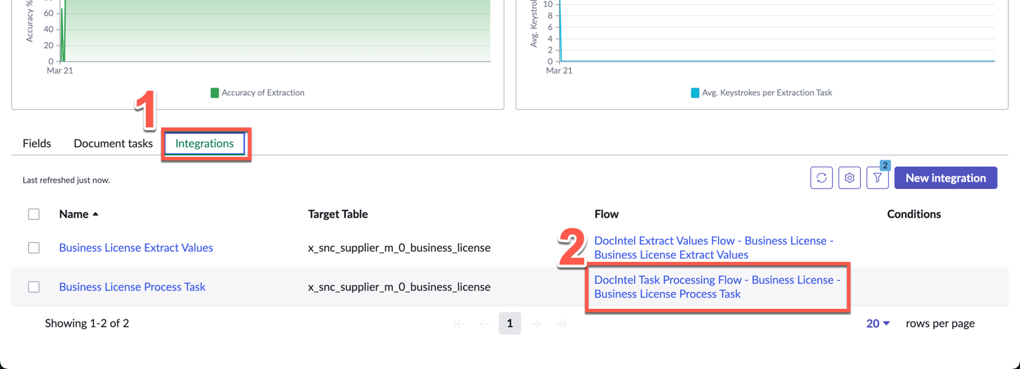 - Integrations: Integration to trigger document task processing or value extraction. Integrations can be used to quickly set up flows with other applications.