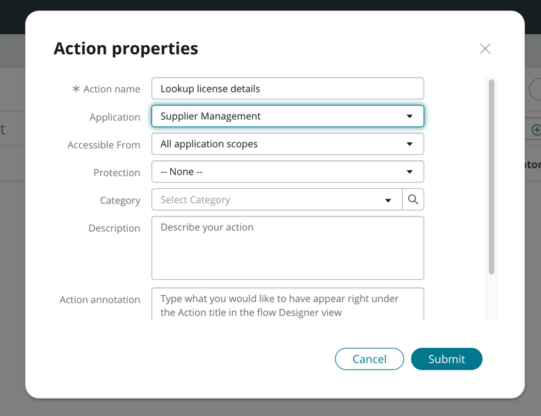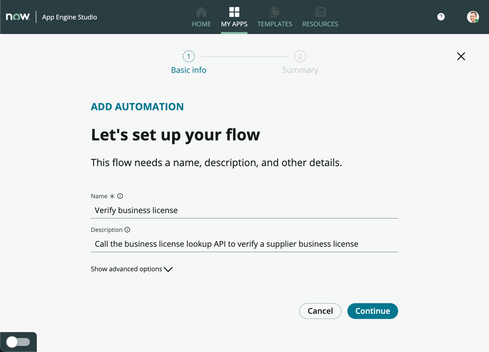 Under Description, enter Call the business license lookup API to verify a supplier business license