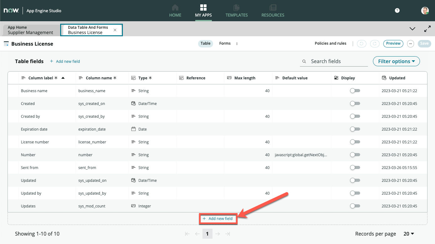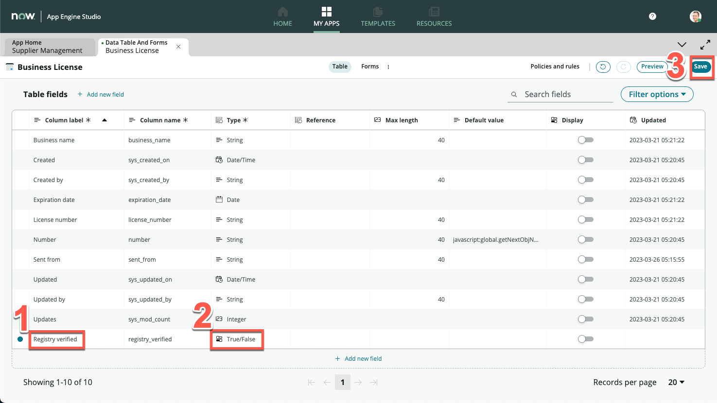 We first have to add a field to our custom Business License table to mark whether the record has been verified.