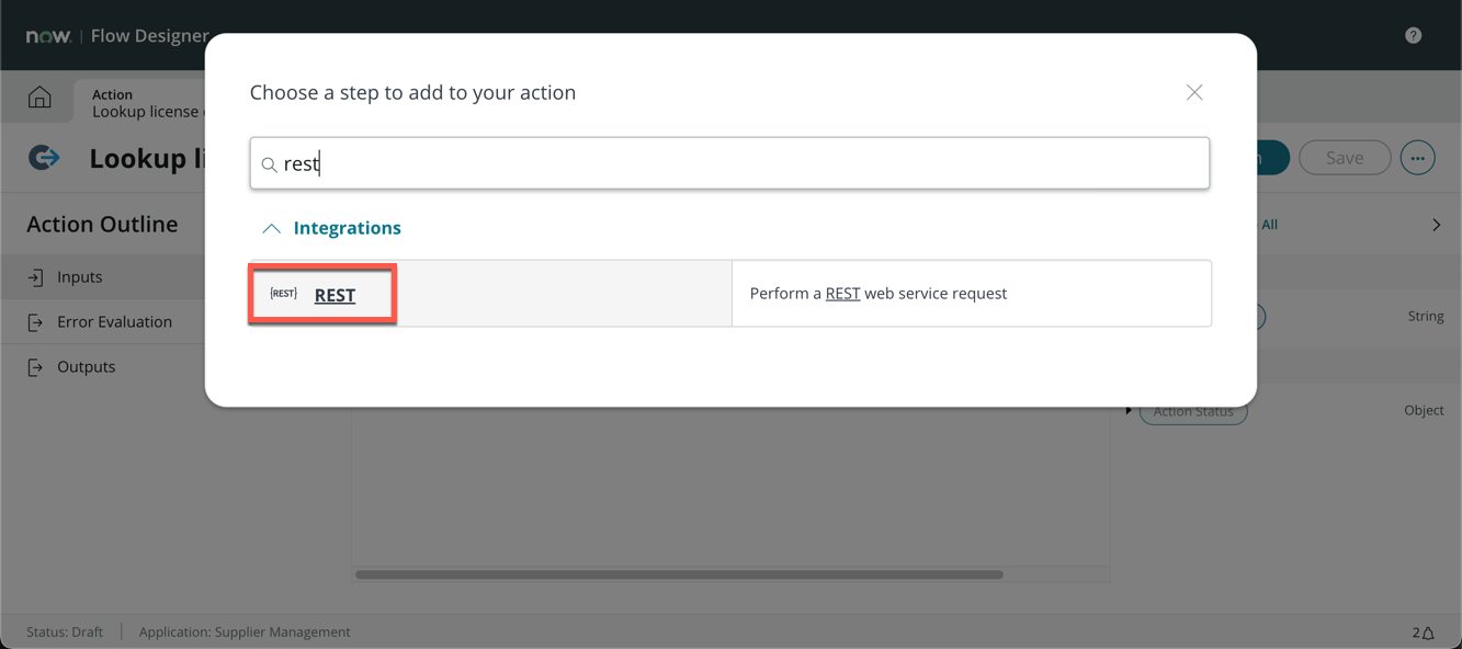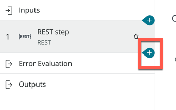 Click Add new step icon on the left side of the screen, in between REST step and Error Evaluation