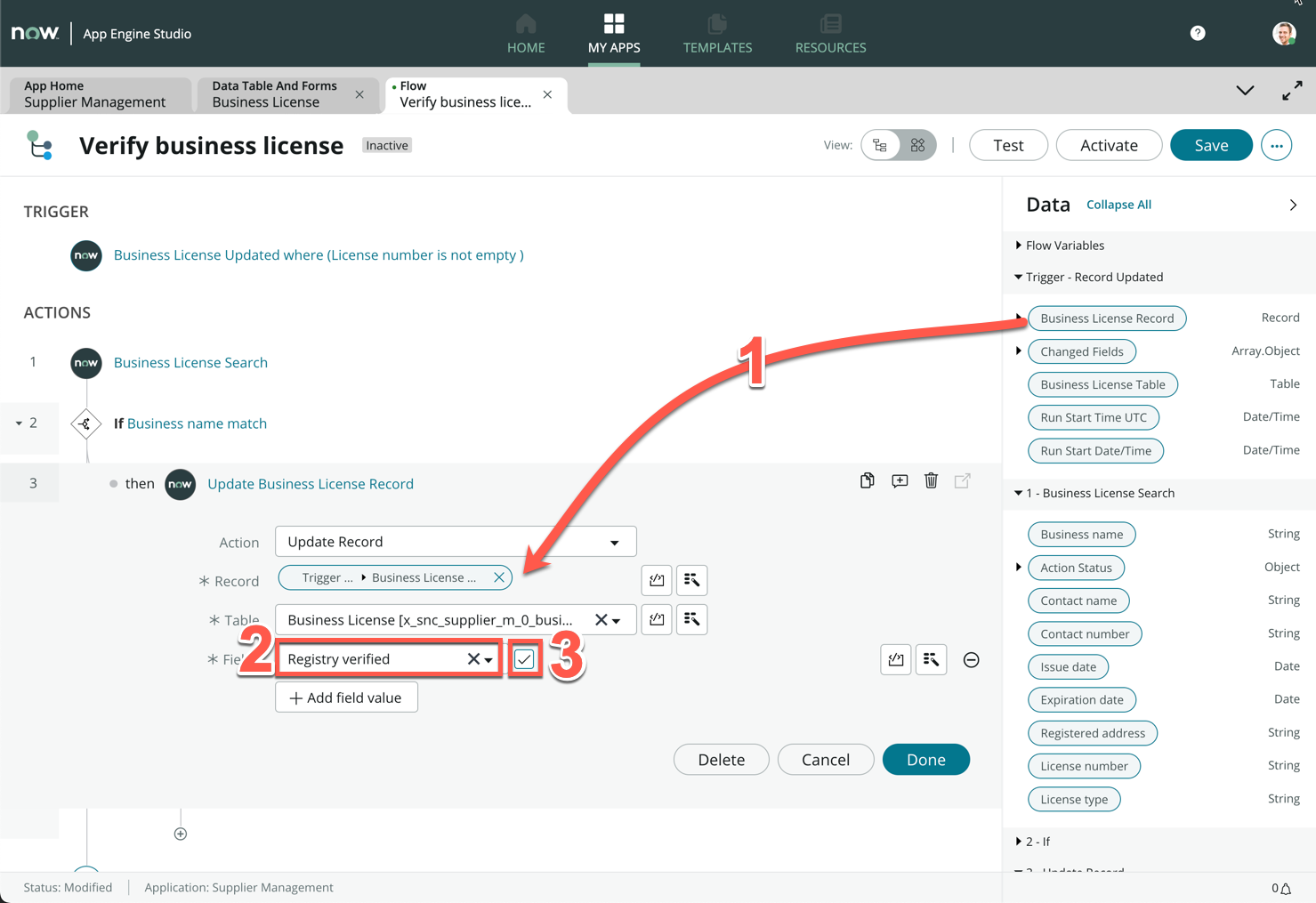 Now that we have the Registry verified field to indicate whether a record has been verified, we will use the Business License Search API to populate this field. We will first create a custom action to integrate with this API service, before using it in a flow.